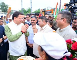 मुख्यमंत्री श्री पुष्कर सिंह धामी ने बुधवार को देहरादून नगर निगम के अंतर्गत केदारपुरम में योगा पार्क एवं अन्य विकास कार्यों का लोकार्पण एवं शिलान्यास किया। इस अवसर पर उन्होंने एआई चैटबॉट ‘निगम सारथी’ लॉन्च किया और हरित नीति के डोक्यूमेंट का अनावरण भी किया। मुख्यमंत्री ने पर एक पेड़ माँ नाम के नाम के तहत रूद्राक्ष का पौधा रोपा, जो सरकार द्वारा चलाये गये बृहद पौधारोपण अभियान के तहत नगर निगम क्षेत्र देहरादून के अन्तर्गत इस वर्ष रोपा गया एक लाखवां पौधा था। कार्यक्रम में मुख्यमंत्री ने स्वच्छता सम्मान सेनानियों और कर निरीक्षकों को सम्मानित भी किया। इस अवसर पर मुख्यमंत्री ने नशा मुक्ति के लिए सामूहिक शपथ भी दिलाई।