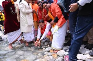 गंगोत्री धाम के कपाटोद्घाटन समारोह में प्रतिभाग करते हुए मुख्यमंत्री श्री पुष्कर सिंह धामी ने मॉं गंगा के मंदिर में शीश नवाया और विशेष पूजा-अर्चना की और देव डोली से आशीष भी प्राप्त किया।